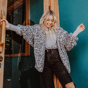Be ready for brisk nights sipping wine on the patio by the firepit with this Grey Leopard Lightweight Body Wrap With Hoodie.