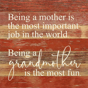 If you're a grandmother, you know, it really is the most fun to spoil your grandchildren and to be adored. Made from recycled woods, this rustic themed sign has a recessed back making it easy to hang on a nail, or stand on its edge on your counter, desk, or mantle. An ideal gift from a grandchild or daughter.