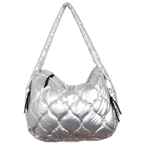 This Metallic Silver Oversized Puffer Bag is a must-have fashion accessory this season!