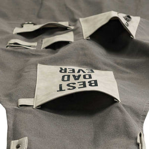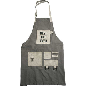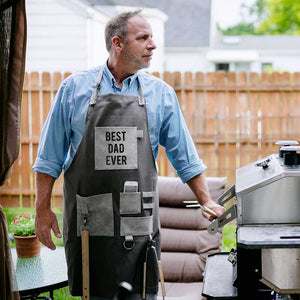 He's the Best Dad Ever, and not just when grilling up some delicious food for you! Celebrate Dad with this cotton Best Dad Ever canvas grilling apron with polyurethane leather pockets and metal accent trim. With all of the pockets and hooks, Dad will be well organized and have all of his grilling tools handy, making his, and your, life easier! Towels and tongs will be within easy reach, and so will his phone so he can let all know when the burgers are done.