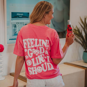 Put your worries aside when you slip on the Feeling Good Like I Should Oversized T-Shirt.