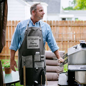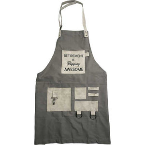 Retirement is awesome, especially when you're outside wearing this Flipping Awesome Grill Apron! The cotton canvas apron has polyurethane leather pockets and metal accent trim. Sick of dropping your grilling tools as you're looking for the BBQ sauce and flipping burgers at the same time? Your life will be made easier with the sturdy metal clips and hook! Keep your towel handy and your tongs within reach! The canvas material will keep the sauces off of you and looking sharp so you can grill with confidence.