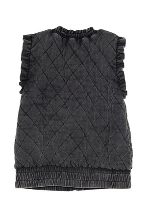 Garment Washed Quilted Ruffle Sleeve Vest