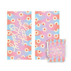 What better way to enjoy lazy days in sun than with the Lazy Daisy Quick Dry Beach Towel. This colorful pink, peach, blue, and ecru print towel is perfect for the beach, the pool, or just catching some rays in the backyard. It is printed on both sides and even comes with a handy carry pouch. You'll love this quick drying sand free beach towel.