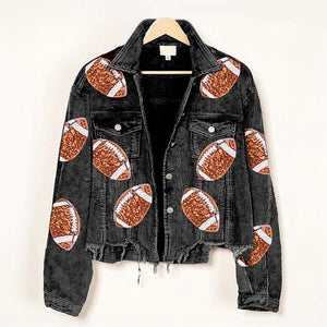 You will look dazzling in the stands wearing this Sequin Football Cropped Corduroy Shacket.