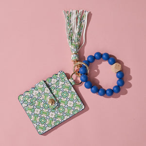 Designed with vibrant silicone beads and a chic hexagonal wood accent bracelet, this wristlet wallet is as stylish as it is practical. Crafted to hold your essential accessories such as credit cards, ID, and keys, it ensures you have everything you need right at your fingertips.