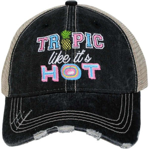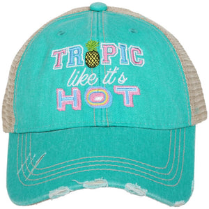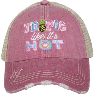 Put yourself and others in the vacay mood when you're wearing the Tropic Like It's Hot Trucker Hat. The casual vibes of this cap adds style and color to your favorite outfits or swimsuits. Colorful embroidered text with pineapple icon on colored front panel:
