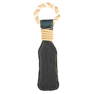 Don't let your best friend drink alone when you can give the Drinking Alone Dog Chew Toy! Grab the "bottle" and enjoy a game of tug-of-war with your best pup. It is not only durable and fun, but it also has a squeaker and attached rope ring for hours of entertainment.
