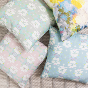 Brighten any living space with the Butterfly Garden Sky Linen Pillow from Laura Park Designs. The soft multi-colored pattern complements a variety of patterns and textures with eye-catching appeal. Inspired by her original art, this designer-quality pillow brings vivid color to living spaces throughout the home. Available in a variety of sizes.