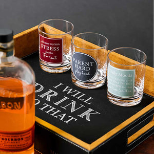 Tough day parenting? Reward yourself with your favorite cocktail in the Daily Moods 11 oz Rocks Glass.