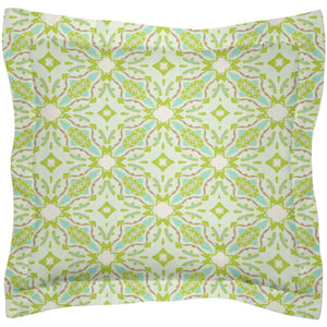 This soft green sham is inspired by the rhythmic waves and vibrant motifs of Portugal. Dream of strolling the coastal villages admiring the Moorish architecture as you drift to sleep. An ideal selection to accent your bedroom with color and texture.