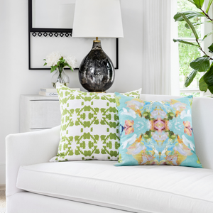 The soft multi-colored pattern complements a variety of patterns and textures with eye-catching appeal. Inspired by Laura Park's original art, this designer-quality pillow brings vivid color to living spaces throughout the home.