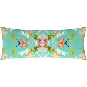 Brighten any living space with the Stained Glass Turquoise Linen Throw Pillow from Laura Park Designs.