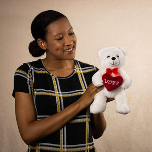 This cute and cuddly plush bear is perfect for Valentine's and anytime you want (or need?) to give a lasting memento of your love. It's an ideal size to place on a desk or dresser, or anywhere within quick view. Giving your special someone a special gift? Add this plush bear to give the experience extra cuteness!